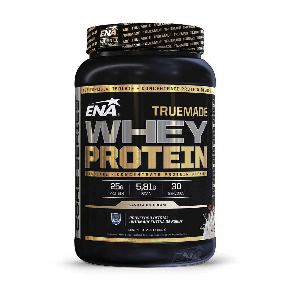 - TrueMade Whey Protein (2,05Lb): Blend de proteína concentrada e aislada (WPC + WPI), con 25g de proteína y casi 6g de BCAA por porción. Aporta rápida absorción para una recuperación muscular efectiva.